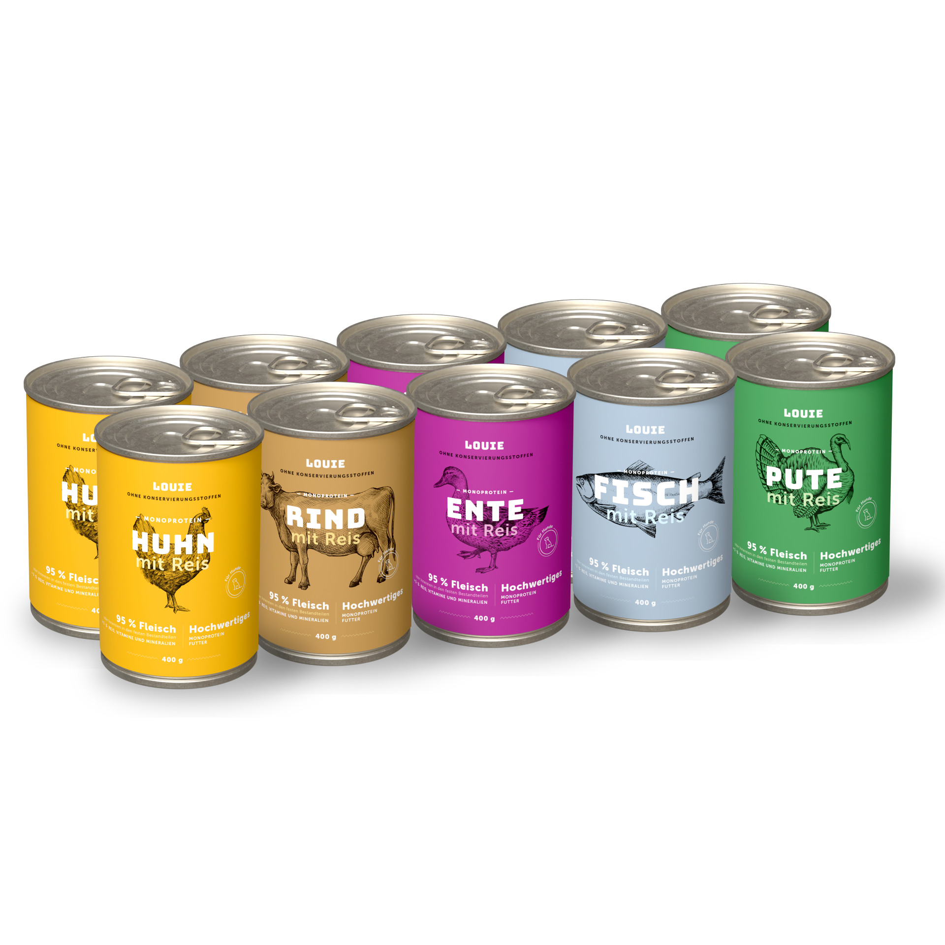Ja, auf jeden Fall! Die LOUIE-Dosen enthalten alles, was dein Vierbeiner für ein gesundes und aktives Leben braucht. Sie bestehen zu 95 % aus Fleisch in der festen Masse und zu 5 % aus pflanzlichen Bestandteilen, Vitaminen und Mineralstoffen. Es sind keinerlei Konservierungsstoffe, Geschmacksverstärker oder sonstige unnötige Chemie enthalten.