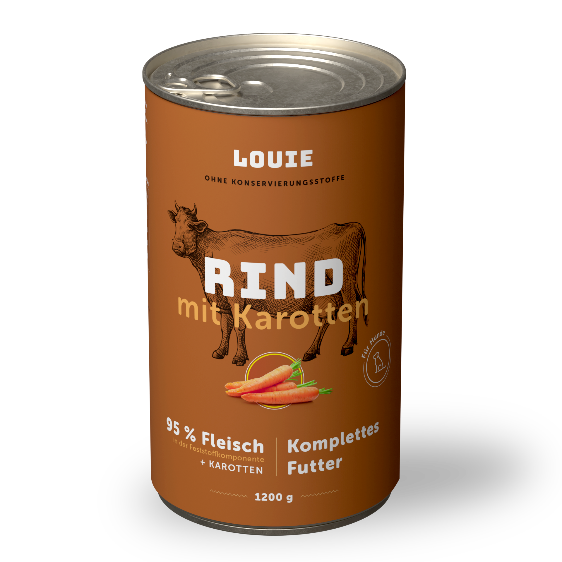 Vollwertiges Futter ohne unnötigen Schnickschnack. Die saftigen Dosen enthalten 95 % Rinderhackfleisch im festen Anteil sowie 5 % pflanzliche Bestandteile, Vitamine und Mineralstoffe. Die enthaltenen Karotten liefern dem Hund zusätzlich wichtige Nährstoffe und Mineralien. Und nach Louie bleibt nur ein sauber ausgeschleckter Napf übrig.
