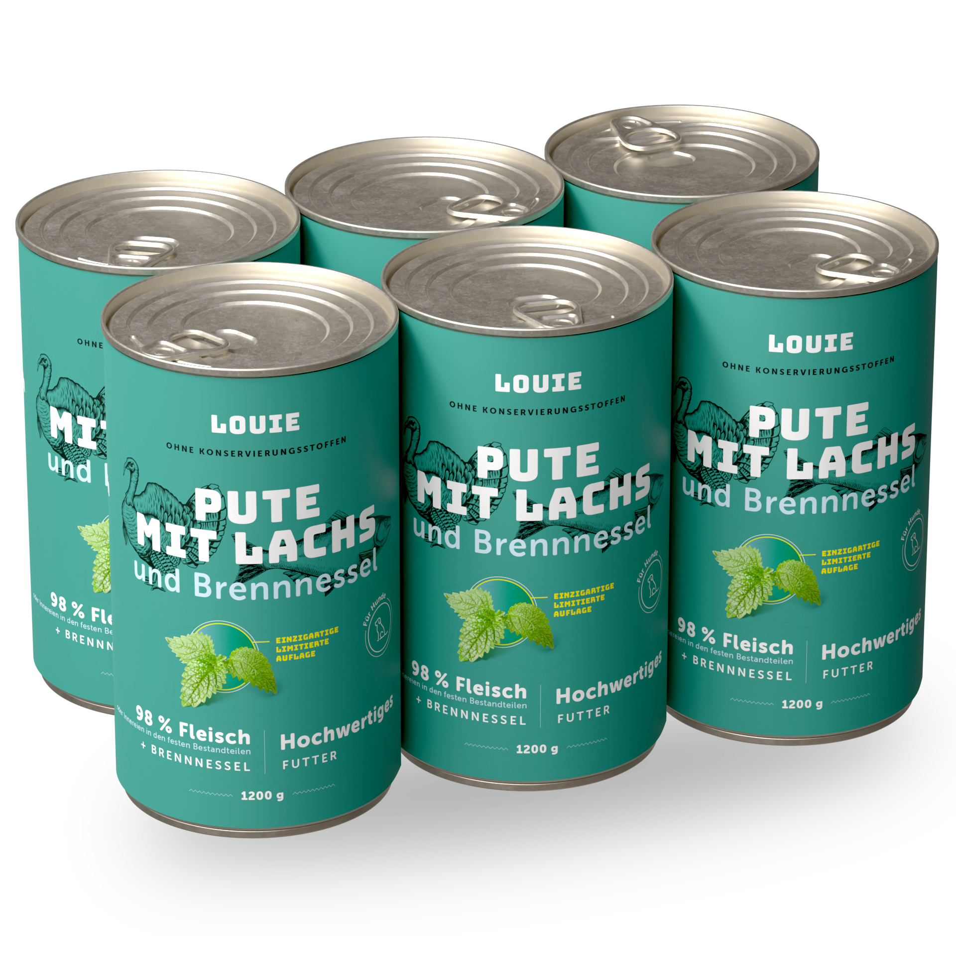 Vorteilspackung mit 6 Stück - Pute mit lachs und brennnessel 1200g