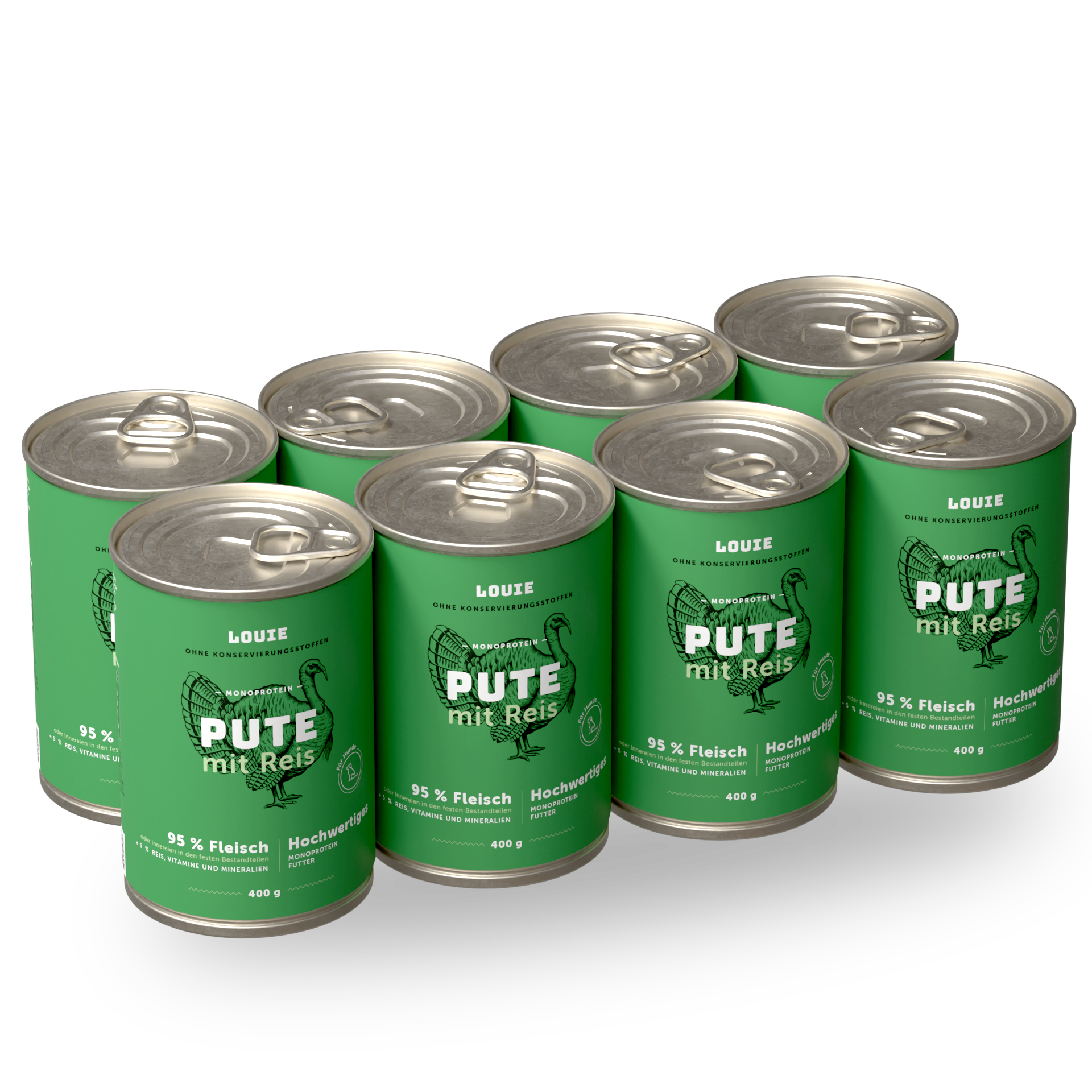 Ja, auf jeden Fall! Die LOUIE-Dosen enthalten alles, was dein Vierbeiner für ein gesundes und aktives Leben braucht. Sie bestehen zu 95 % aus Fleisch in der festen Masse und zu 5 % aus pflanzlichen Bestandteilen, Vitaminen und Mineralstoffen. Es sind keinerlei Konservierungsstoffe, Geschmacksverstärker oder sonstige unnötige Chemie enthalten.
